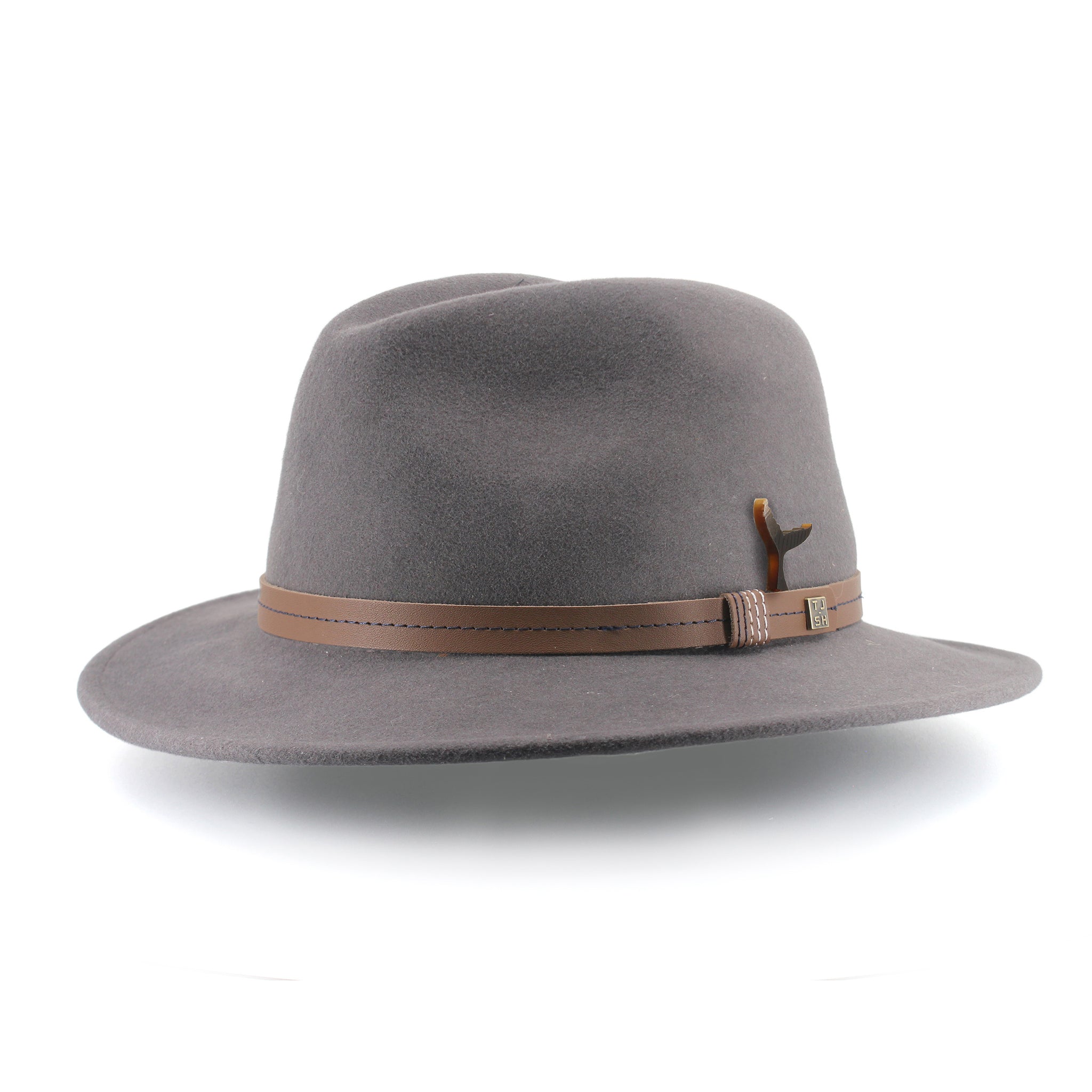 Three classic shades of Australian felt make the SIMPSON ADVENTURER Fedora a perfect go-to style for everyone. A turned-edge, medium width brim is balanced by a matt leather strap with subtle, saddle stitches selected from Tim Johnston’s colour pallet. The end of the strap is finished with a stylish TJSH metal stud. ComfyFit internal adjuster. UPF50+. Proudly Australian made.