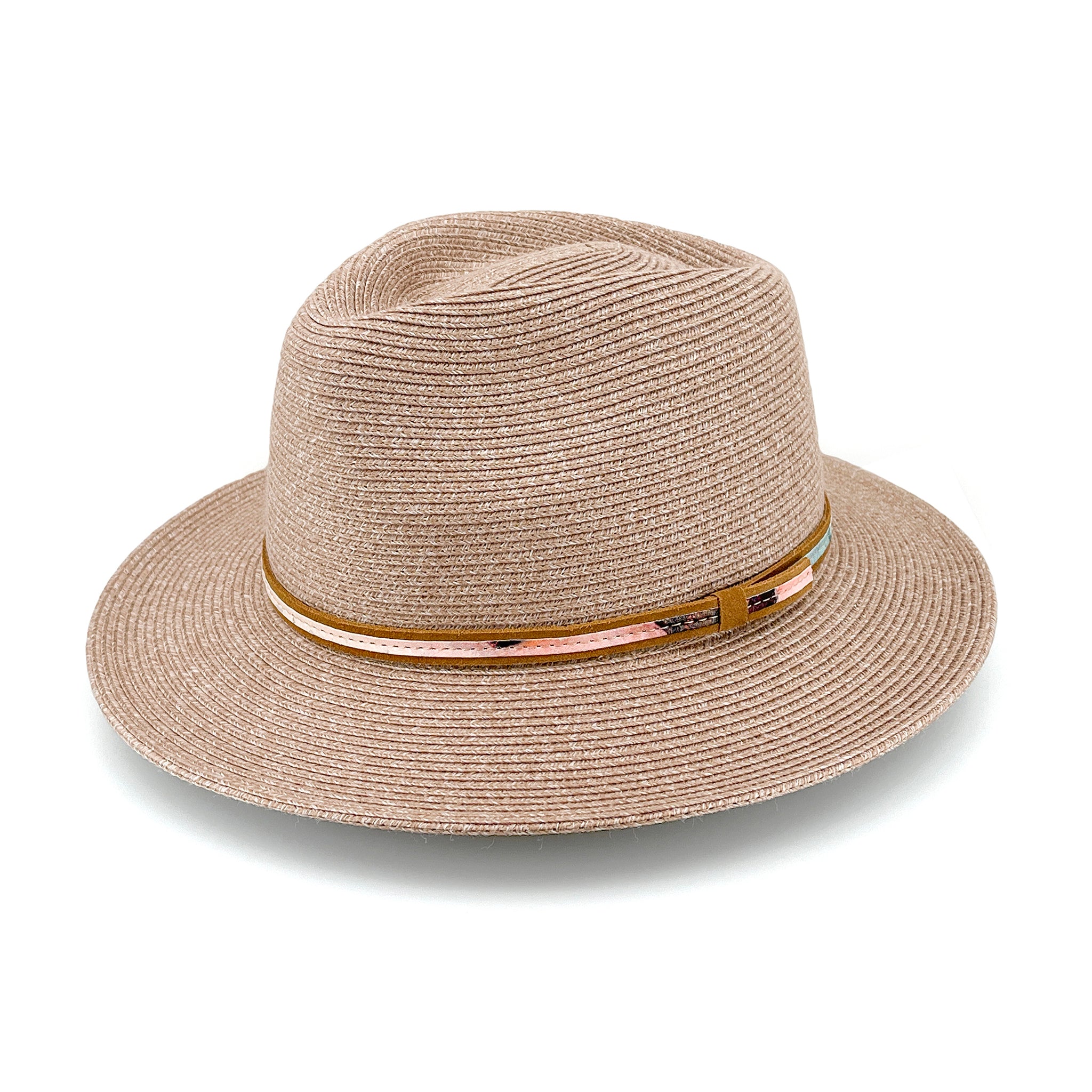 Crafted from resilient Flexibraid® material, this fedora is crush-resistant, lightweight, and ideal for life on the move - whether you're exploring desert trails or drifting along the reef. A tan leather strap anchors the piece with earthy warmth, featuring a mounted detail from Johnston’s ‘Ningaloo Reef’ painting, bringing the reef’s fluid vibrance to every adventure.