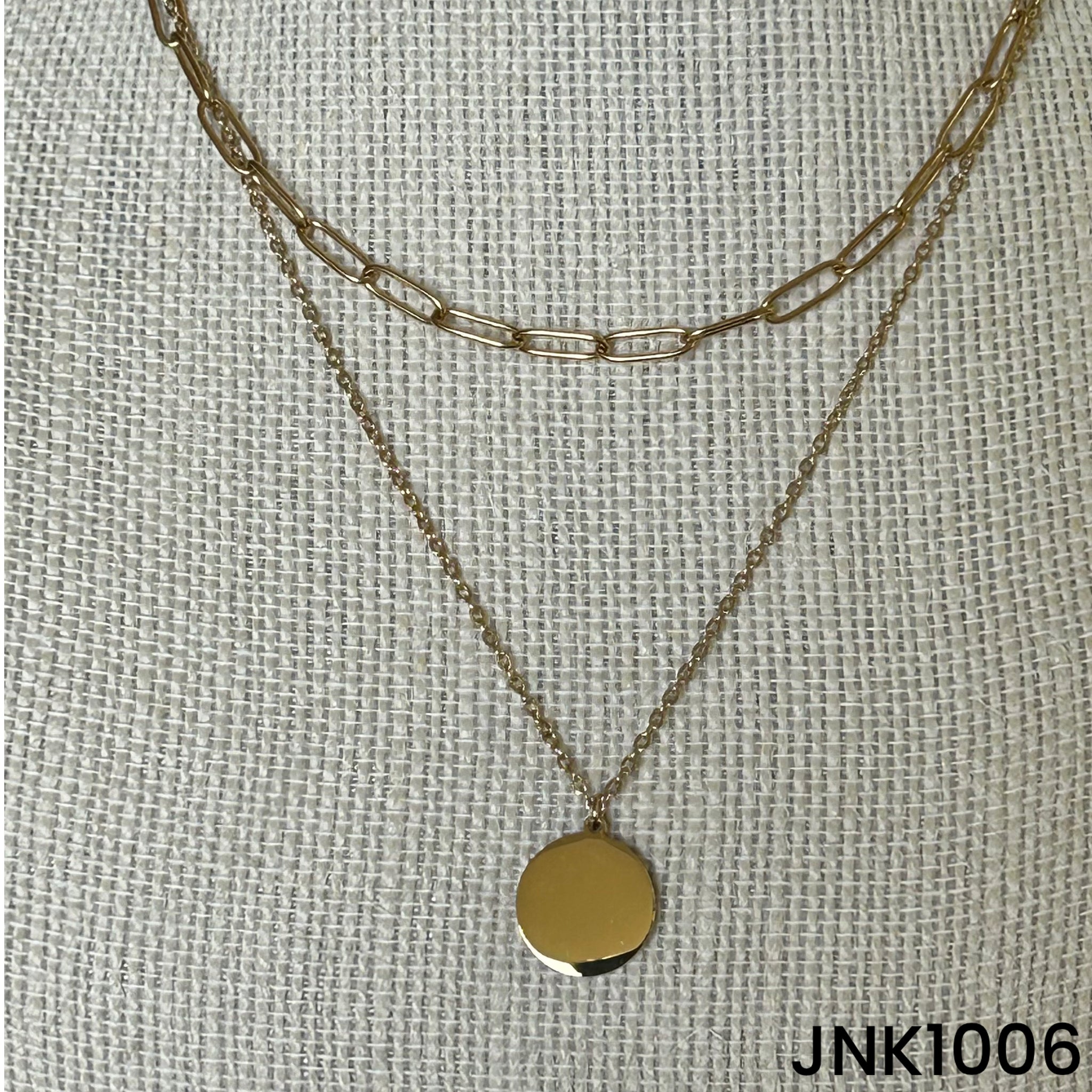 Gold Jewlery -14 K gold plated on surgical stainless steel. Waterproof and tarnish free 12-24 months Each Necklace comes with a Teal Velvet drawstring pouch.