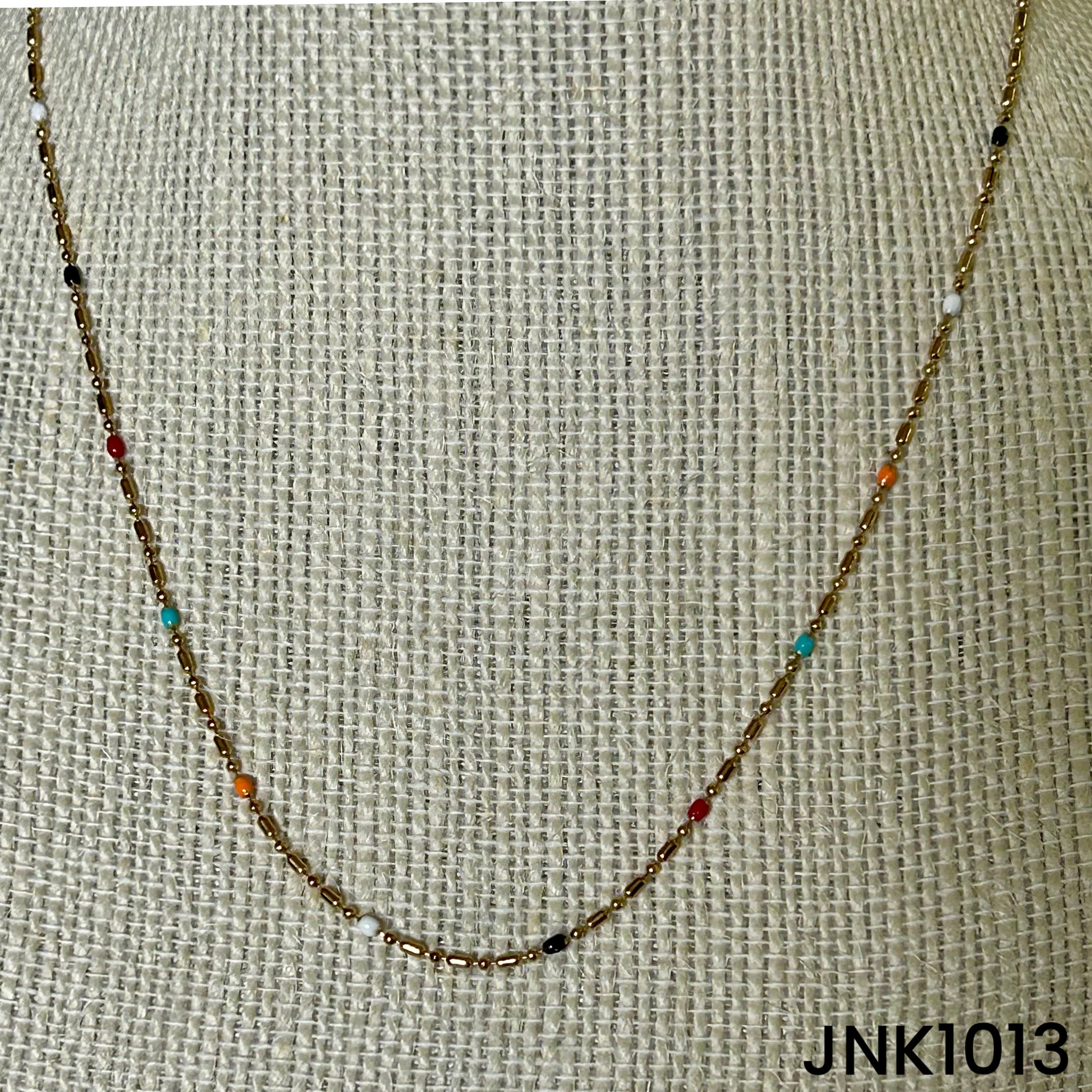 Gold Jewlery -14 K gold plated on surgical stainless steel. Waterproof and tarnish free 12-24 months Each Necklace comes with a Teal Velvet drawstring pouch.